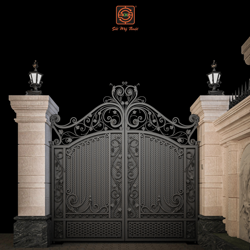 Royal Victorian Classical Style Luxury Wrought Iron Driveway Gate Double Swing Custom 3D Modeling Anti-Theft Hand Forged Metal