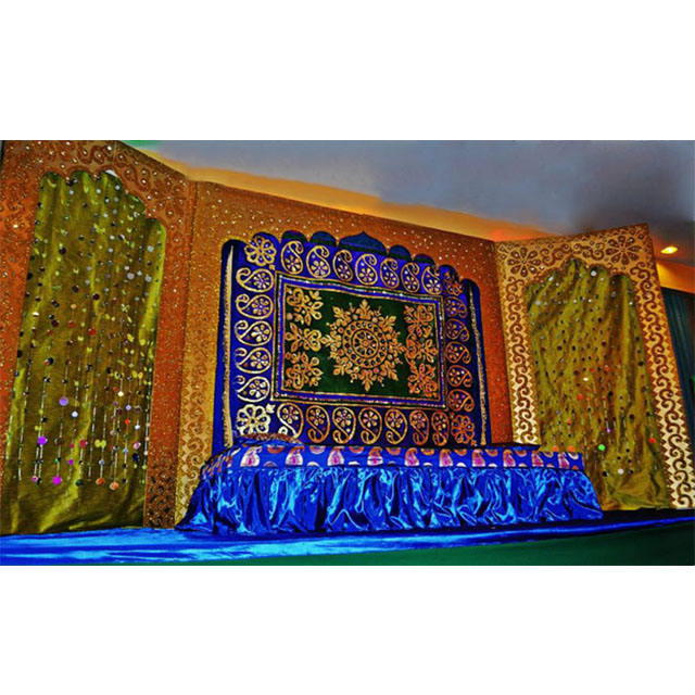 ฉากหลังงานแต่งงานของราชวงศ์เมฮันดี้ปักลายบนเวทีมุสลิมเมฮันดี้ปักฉากหลังสำหรับงานแต่งงานของชาวมุสลิม