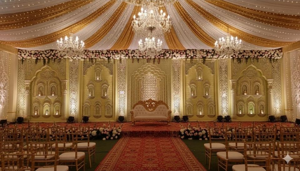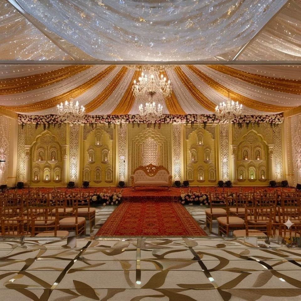 เวทีงานแต่งงานแบบราชวงศ์/ตกแต่งสไตล์มหาราชา เก้าอี้บัลลังก์เจ้าบ่าว โครงเหล็กทรงสี่เหลี่ยม ทำด้วยมือ ทนทาน เป็นมิตรกับสิ่งแวดล้อม สูงกว่า 10 ฟุต
