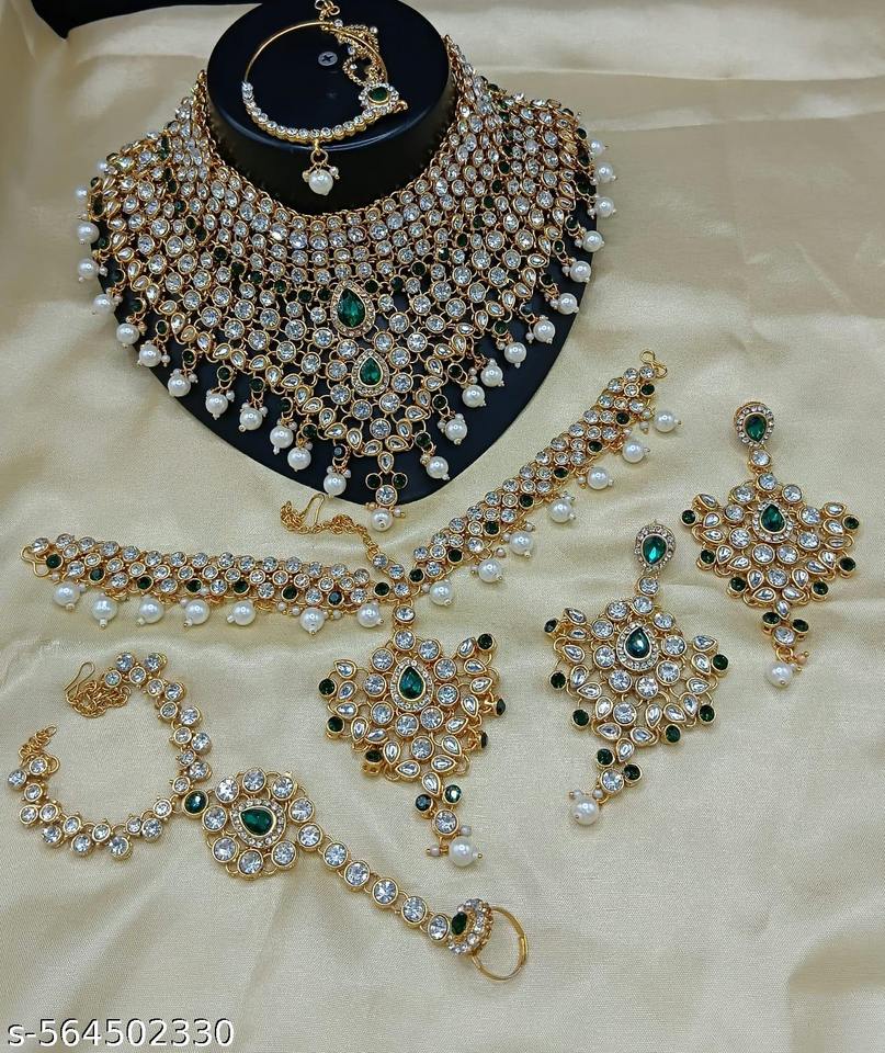 ชุดเครื่องประดับเจ้าสาวแบบอีธนิค คันดัน มุก โรยไวท์ อัลลอยด์ ชุบทองหนา พรีเมียม งานแฮนด์เมด รับรองโดย NGGC สำหรับงานหมั้นและงานแต่งงาน