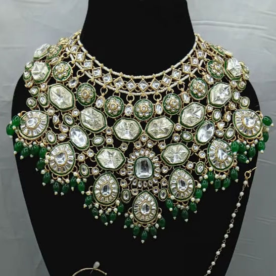 Products Name:Fancy Collection Gold Plated Kundan & Pearl Necklace Set