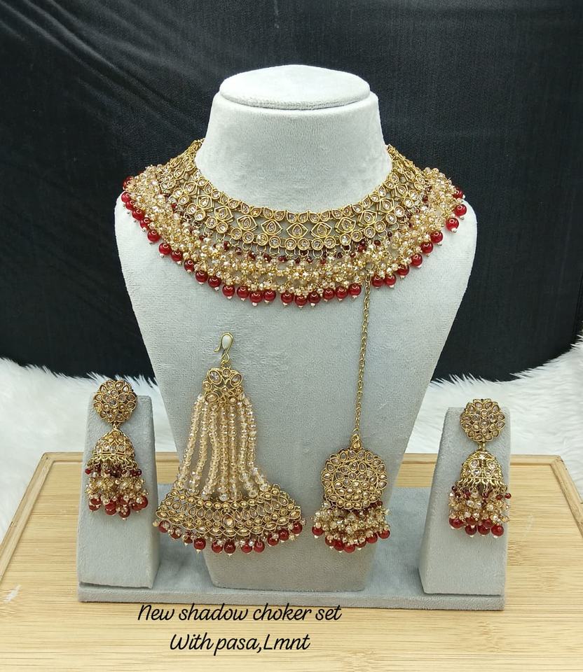 ชุดเครื่องประดับเจ้าสาวแบบอินเดีย ประดับมุกและทองเหลืองชุบทองหนา ดีไซน์ล่าสุด คุณภาพสูง งานแฮนด์เมด รุ่นรอยัลไวท์อัลลอยด์
