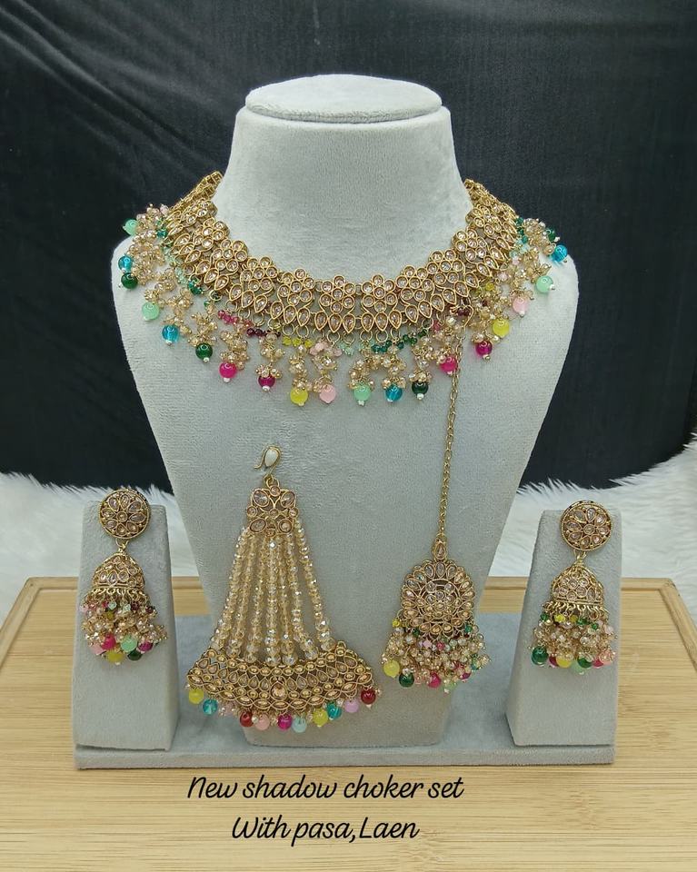 Products Name:Fancy Collection Gold Plated Kundan & Pearl Necklace Set