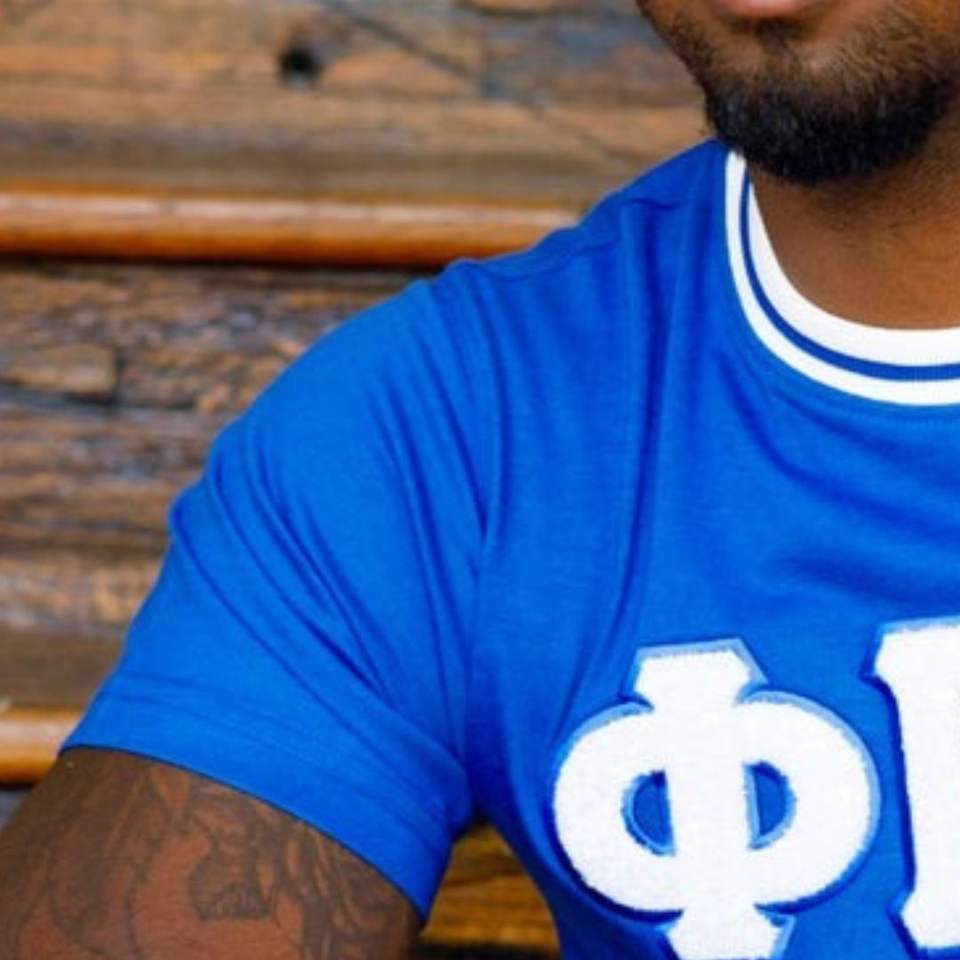 Royal White Sigma Chenille Tee Cotton Collegiate Apparel with Embroidered Letters Greek Life Sigma Fraternity Lifestyle Shirt