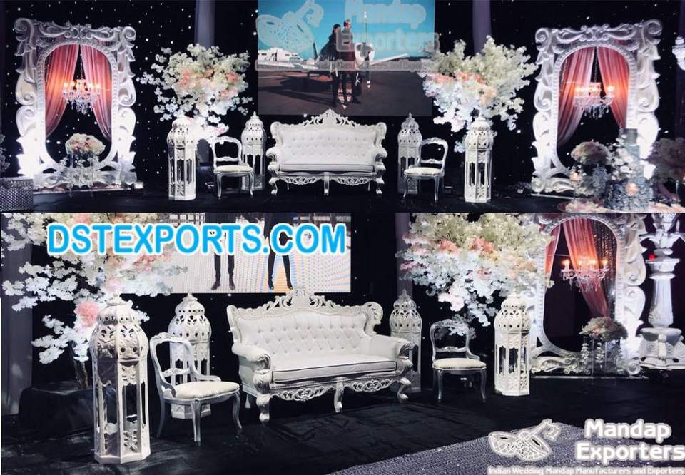 ชุดตกแต่งงานแต่งงานชุดรูปแบบสีขาวรอยัลการตกแต่งงานแต่งงานเวทีที่ทันสมัยสำหรับการต้อนรับงานเลี้ยงค็อกเทลปาร์ตี้เวทีที่ไม่ซ้ำกัน