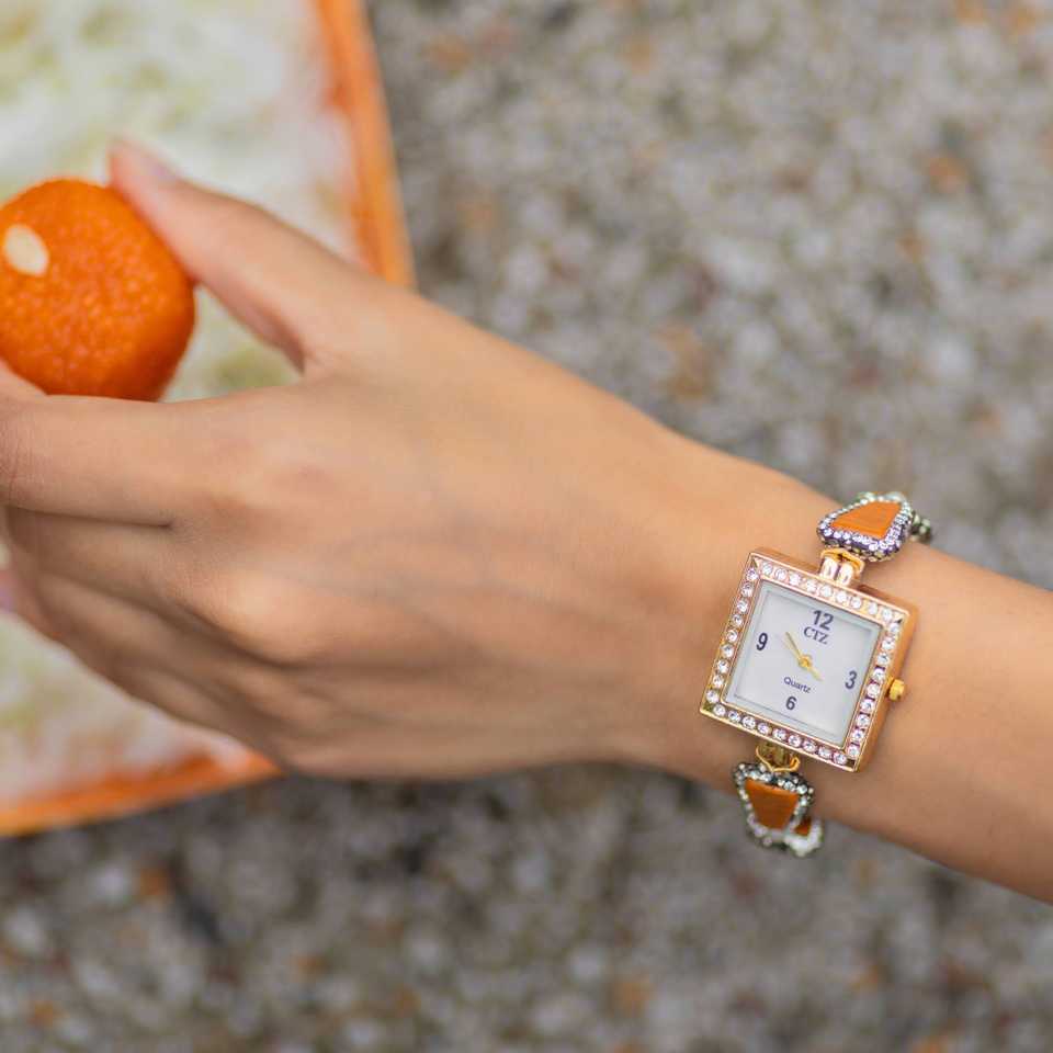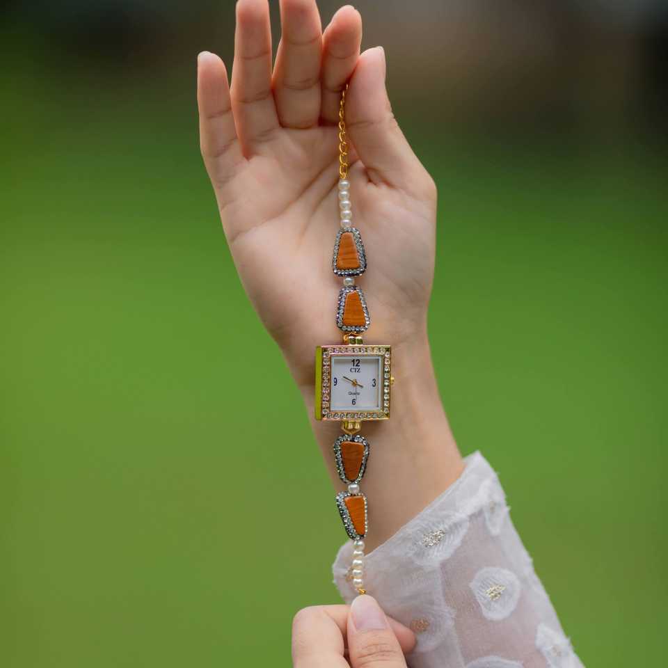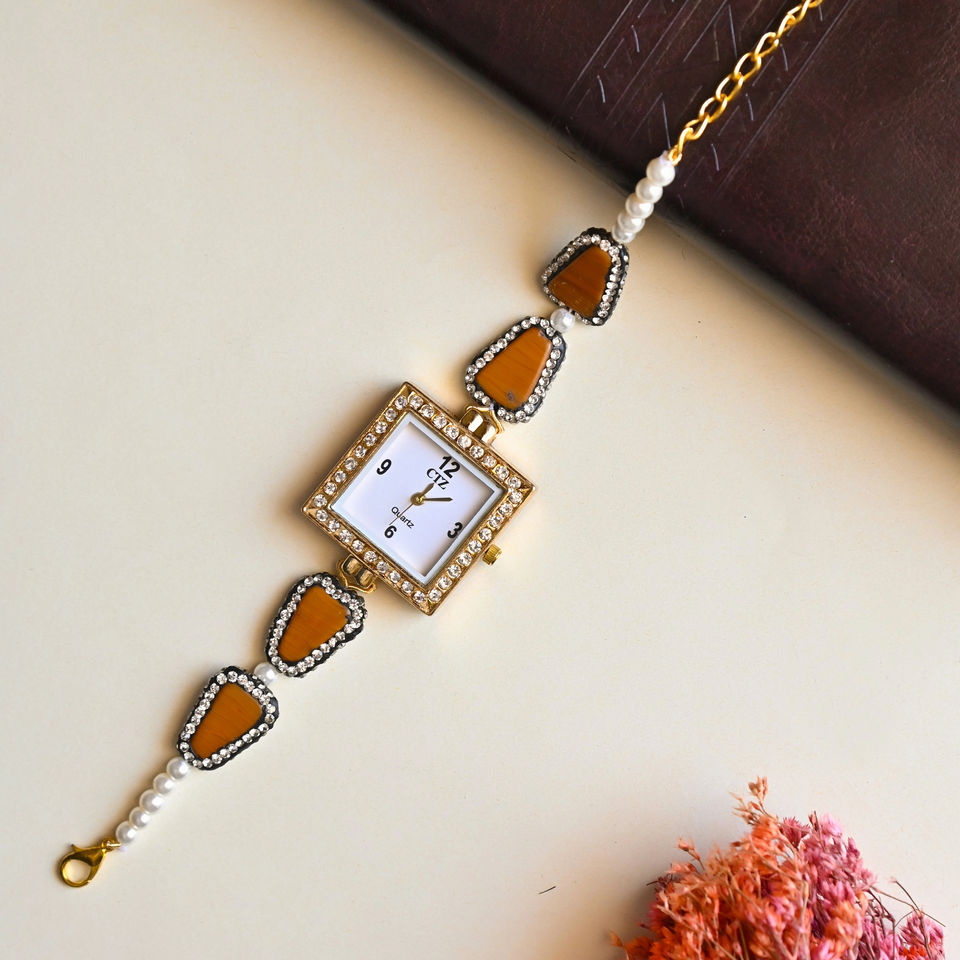 Royal Women's Traditional Pulchra Brown Stone Wrist Watch Luxurious Quartz Timepiece Square Dial Wrist Watch For Women & girls
