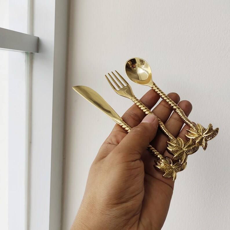 ชุดช้อนส้อมสแตนเลสชุบทอง ดีไซน์หรูหรา คุณภาพสูง จากอินเดีย