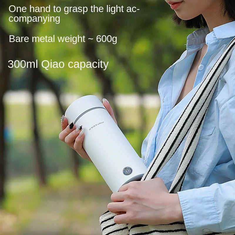 กาต้มน้ำไฟฟ้าอัจฉริยะแบบไม่ใช้แบตเตอรี่ พกพาสะดวก ทำจากสแตนเลสและแก้ว ให้ความร้อนเร็ว สายไฟสีฟ้า ใช้ได้กับชา กาแฟ น้ำร้อน ใช้ในรถยนต์ โรงแรม บ้าน และรถบ้าน