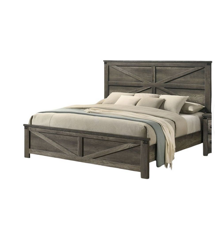 Ru-stic Gray 3-Piece Queen Size Bed Set Unique European Design with Wood Headboard & Nightstands Metal Accents Bedroom Furniture