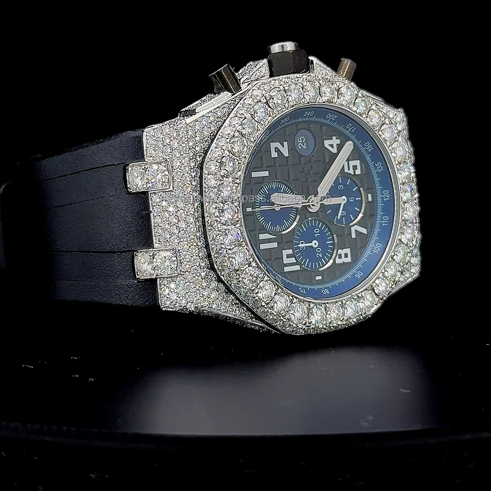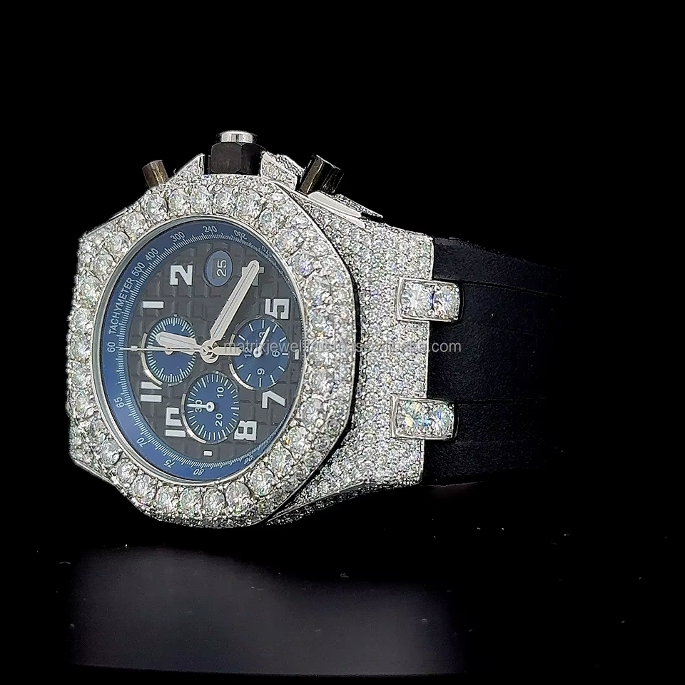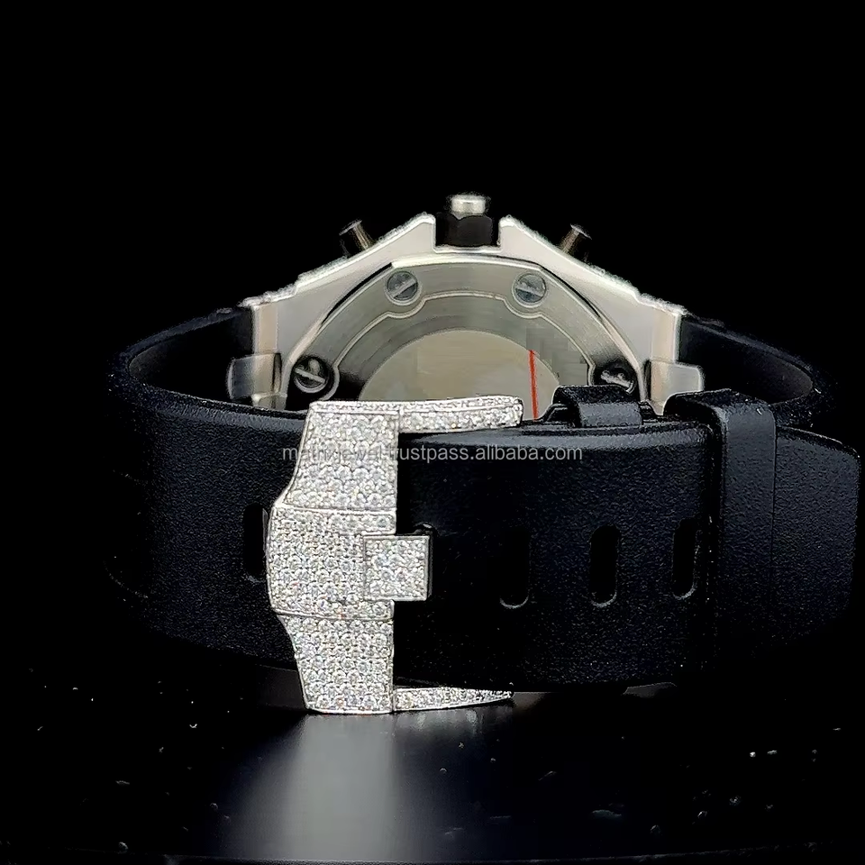 นาฬิกาสายยางแบบครึ่งสายประดับเพชรโมอิสซาไนต์คุณภาพพรีเมียม ผ่านการทดสอบเพชร พร้อมกล่อง
