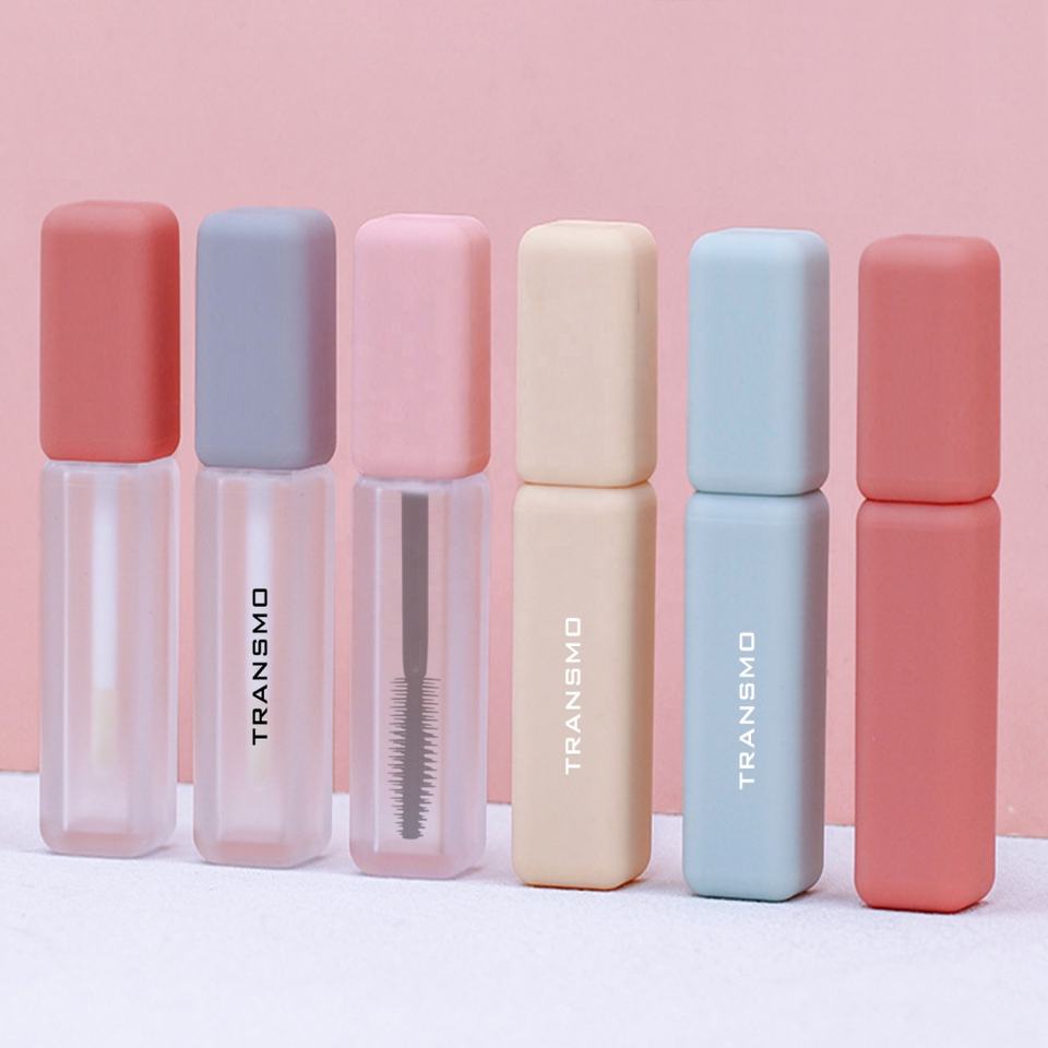 บรรจุภัณฑ์มาสคาร่าแบบยางพ่นสี โลโก้สั่งทำได้ ขวดเซรั่มบำรุงขนตา 12 มล. หลอดมาสคาร่าสีชมพู
