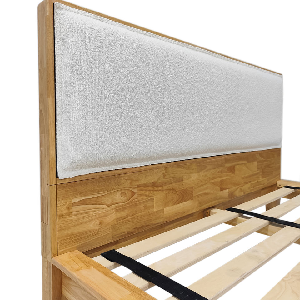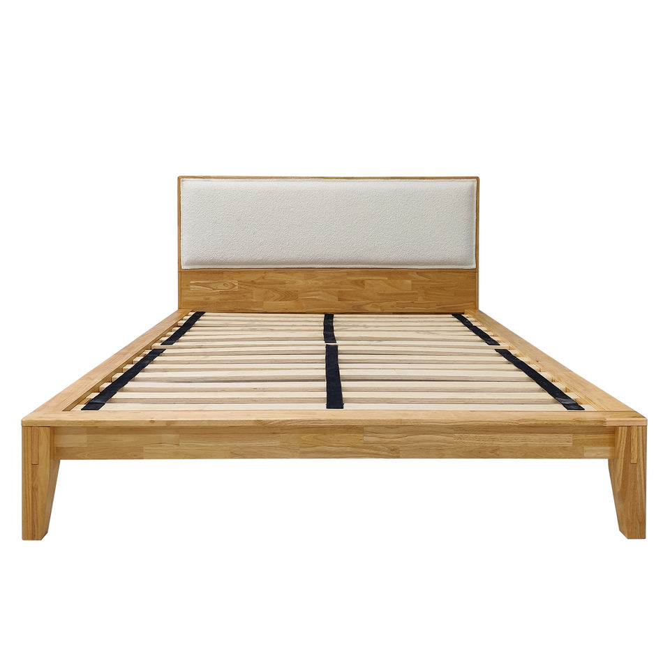โครงเตียงไม้ยางพาราแบบแพลตฟอร์ม พร้อมงานเชื่อมแบบญี่ปุ่น ขนาดและสีตามสั่ง เตียงไม้แท้ OEM/ODM เวียดนาม