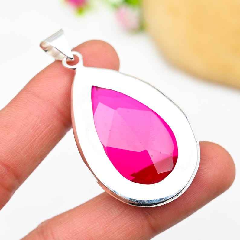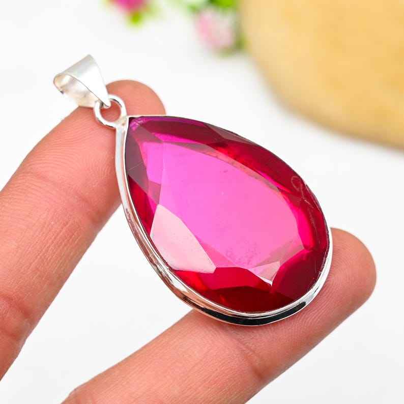 จี้รูเบลไลต์ เงินแท้ 925 สร้อยคอพลอยทำมือ เครื่องประดับของขวัญวันหยุดสุดพิเศษสำหรับผู้หญิงและแฟชั่นเด็ก