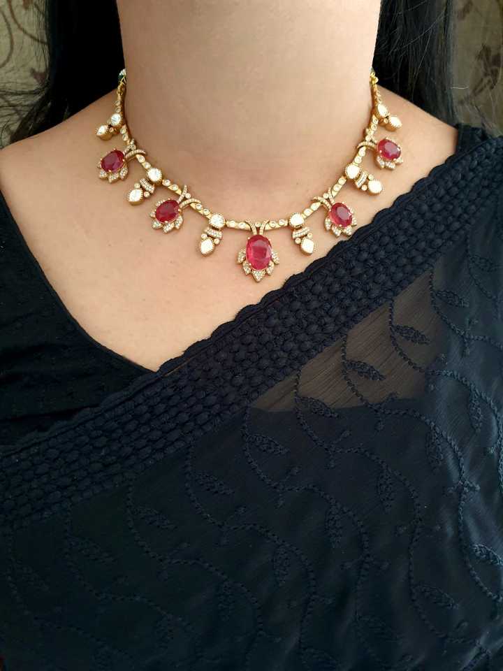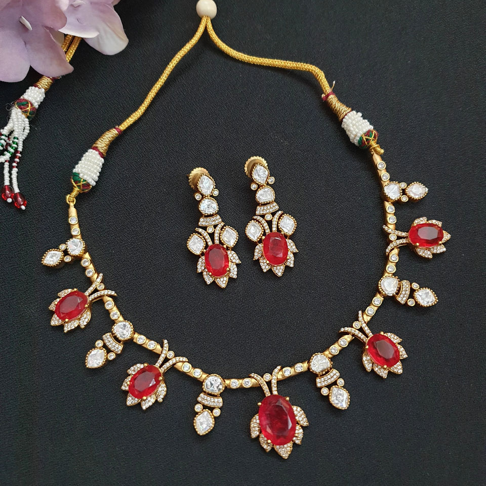 สร้อยโชคเกอร์ประดับเพชรทับทิมแบบอเมริกันพร้อมต่างหูชุดเครื่องประดับแบบโชกเกอร์สร้อยคอดีไซน์เนอร์เครื่องประดับแต่งงานสำหรับผู้หญิง