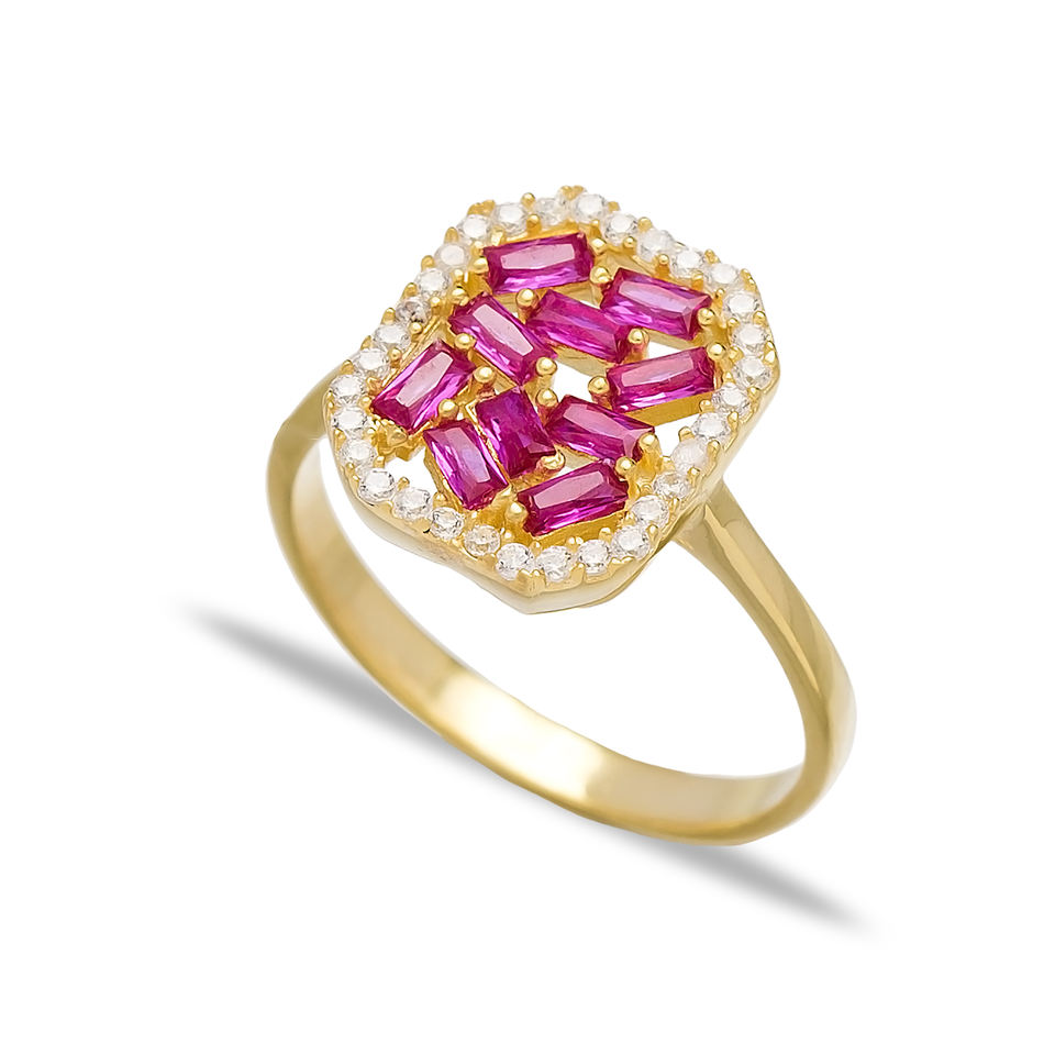 ทับทิมเหลี่ยมการออกแบบที่หรูหรารูปทรงเรขาคณิต ShapeTurkish แหวนขายส่งที่ทำด้วยมือ925เครื่องประดับเงินสเตอร์ลิง