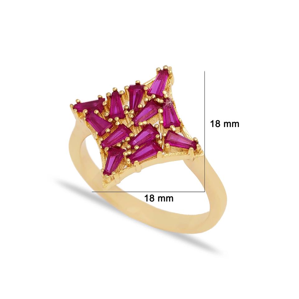 แหวนรูปทรงเรขาคณิตประดับพลอยรูบี้ทรงบาแกตต์สำหรับผู้หญิง งานแฮนด์เมดจากตุรกี ขายส่ง เครื่องประดับเงินแท้ 925