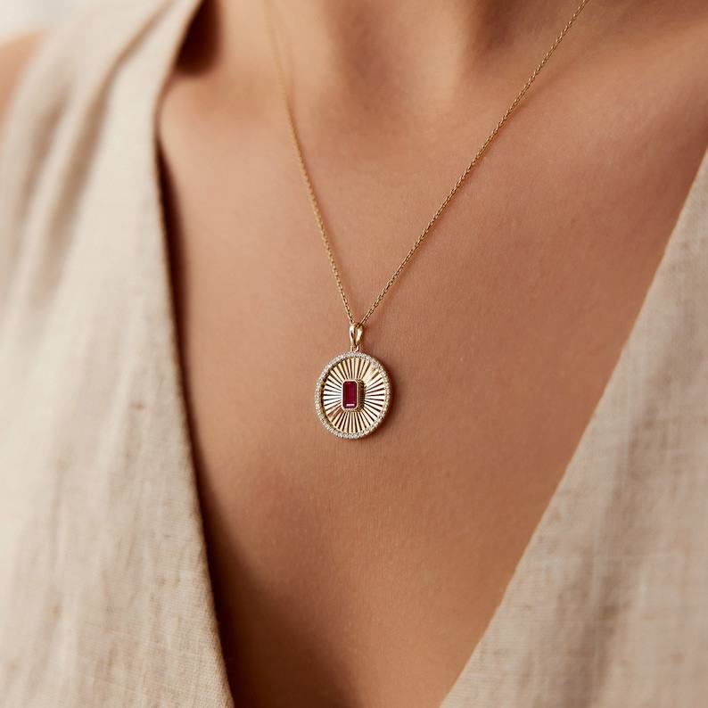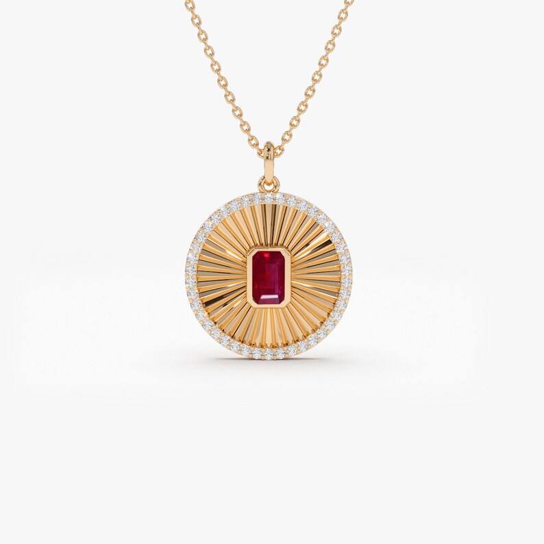 จี้รูปทรงดิสก์รูบี้ บัลเลริน่า เงินแท้ 925 ชุบทอง 14K ประดับพลอยประจำเดือนกรกฎาคม สร้อยคอจี้สวยงาม ของขวัญสำหรับวันหมั้นและวันครบรอบ