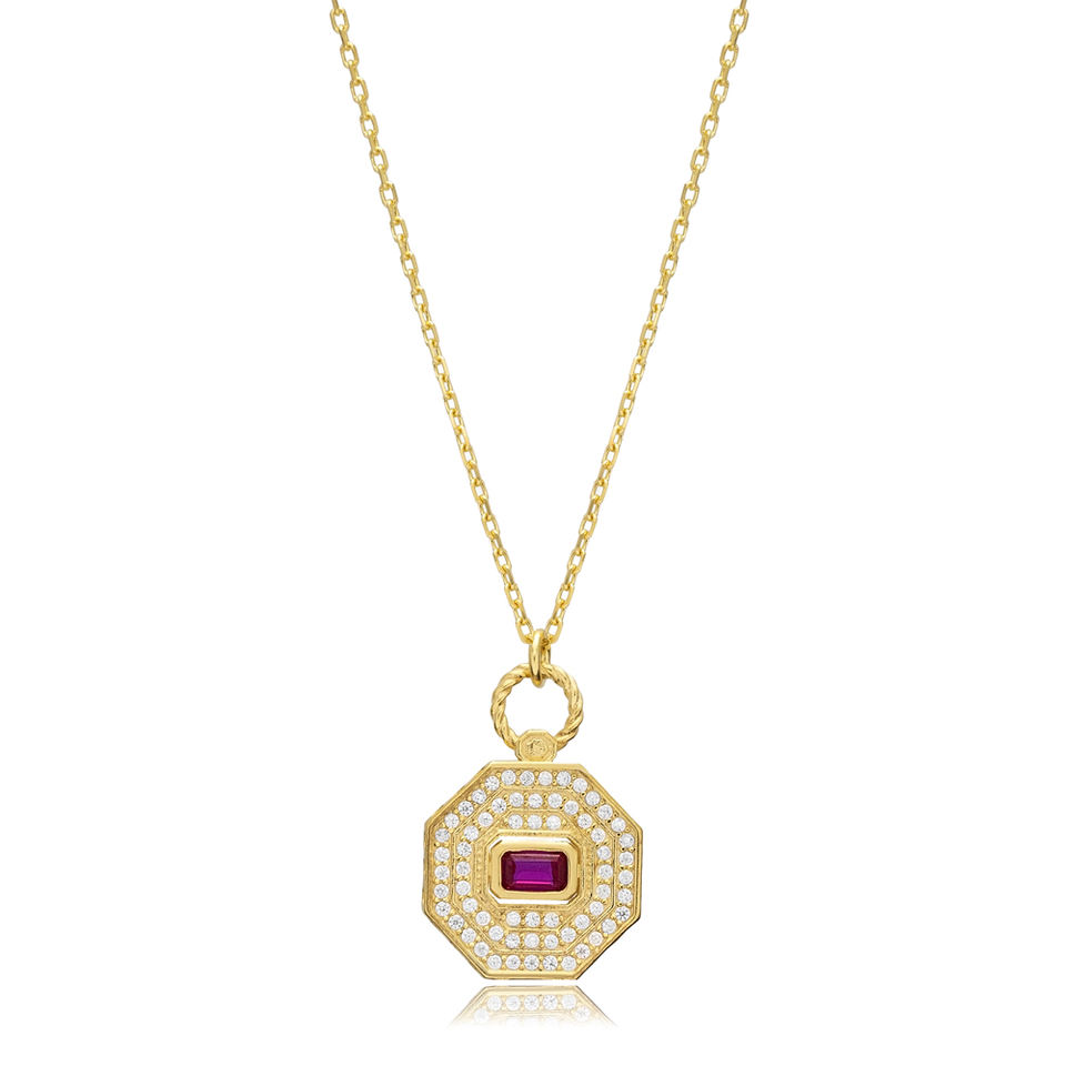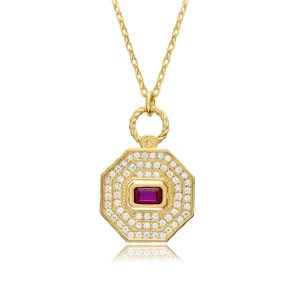 ทับทิม CZ สร้อยคอจี้เงินรูปทรงเรขาคณิตแปดเหลี่ยมขายส่ง925ตุรกีเครื่องประดับเงินสเตอร์ลิง