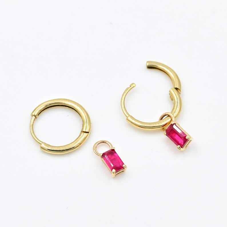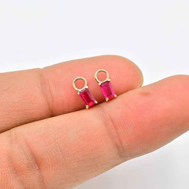 ต่างหูรูปทรงรูบี้ ชาร์ม อีมเมอรัลด์คัท พลอยประจำเดือนกรกฎาคม เงินแท้ 925 ชุบทอง 14k เครื่องประดับคุณภาพสำหรับผู้หญิง