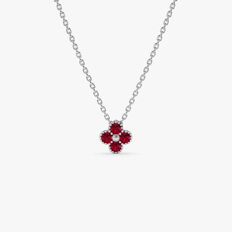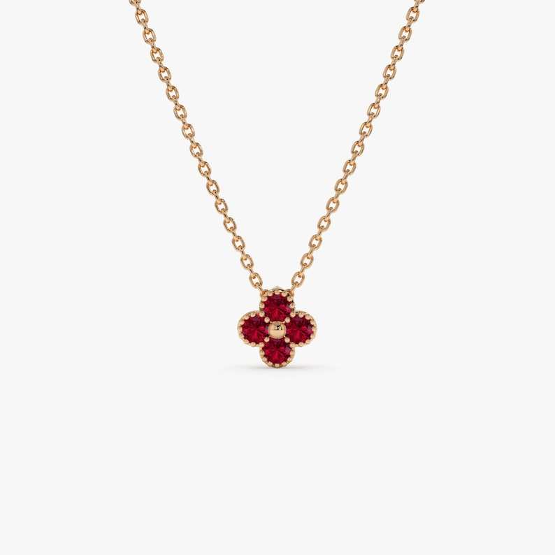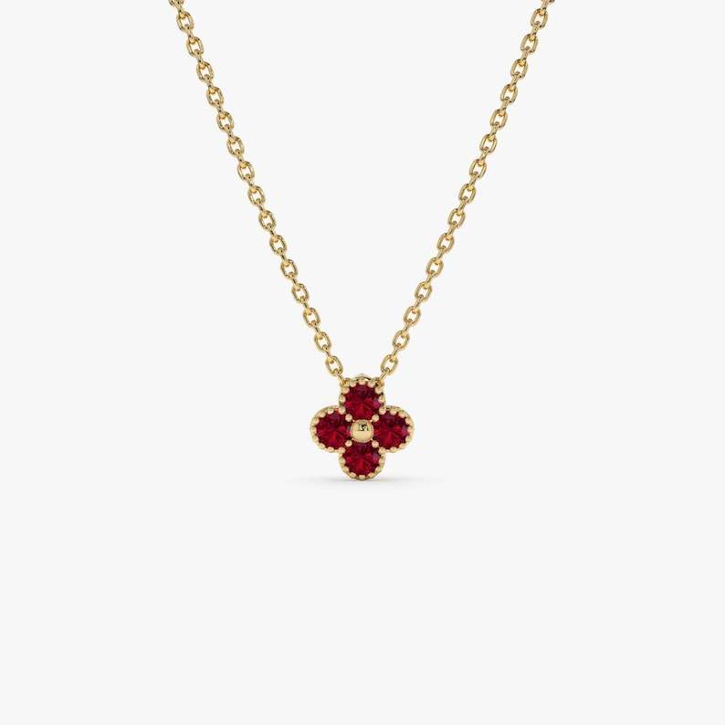 จี้รูปดอกโคลเวอร์สีแดงทับทิม สร้อยคอหรูหราประณีต ประดับพลอยประจำเดือนกรกฎาคม เงินแท้ 925 ชุบทอง 14K เครื่องประดับชั้นดี ของขวัญสำหรับงานปาร์ตี้