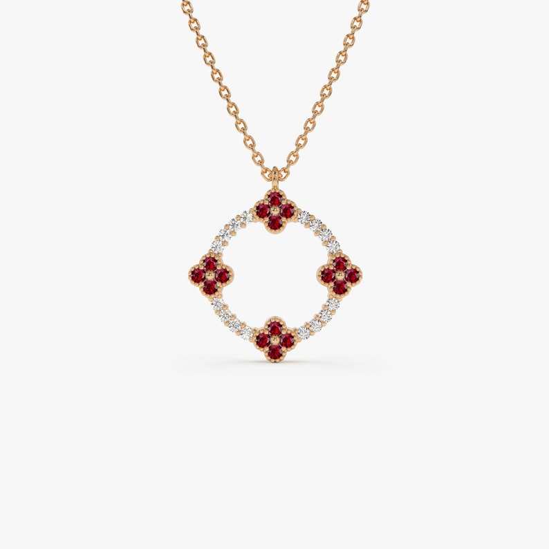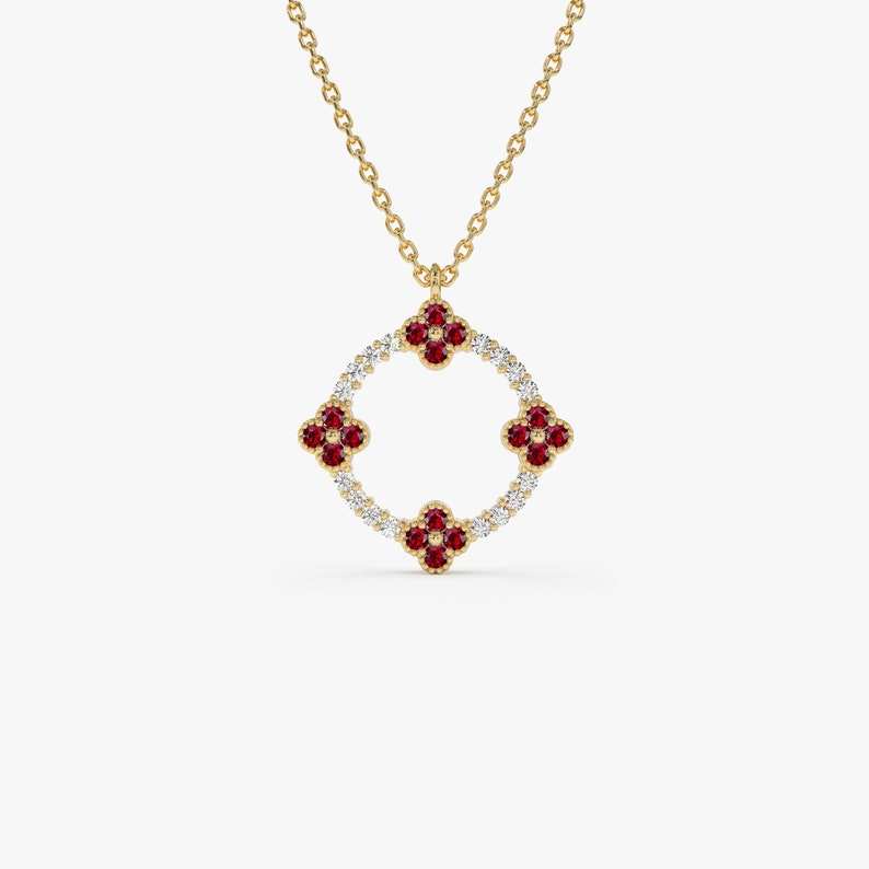 จี้รูปใบโคลเวอร์ประดับทับทิม เงินแท้ 925 ชุบทอง 14K หินประจำเดือนกรกฎาคม เครื่องประดับชั้นดีสำหรับใส่ซ้อนกัน เหมาะสำหรับงานปาร์ตี้และงานหมั้น