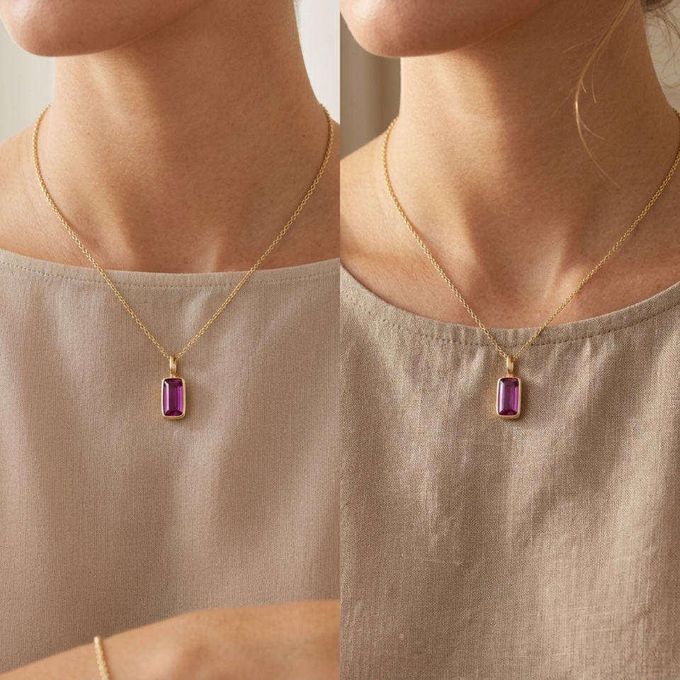 จี้รูปทรงบาแกตต์ ประดับด้วยรูบี้เซอร์โคเนียม สำหรับเดือนเกิดกรกฎาคม