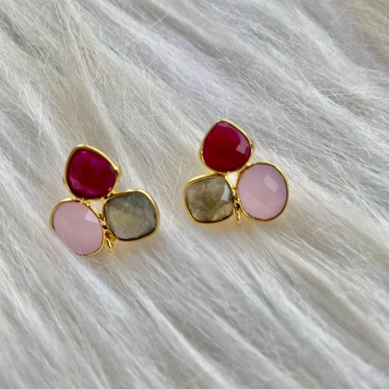 ต่างหูทับทิมตัวเชื่อมต่ออัญมณีธรรมชาติแกนอัญมณีหลายแบบของขวัญวันเกิดสำหรับเธอเป็นของขวัญครบรอบปีสำหรับเธอสำหรับเธอ