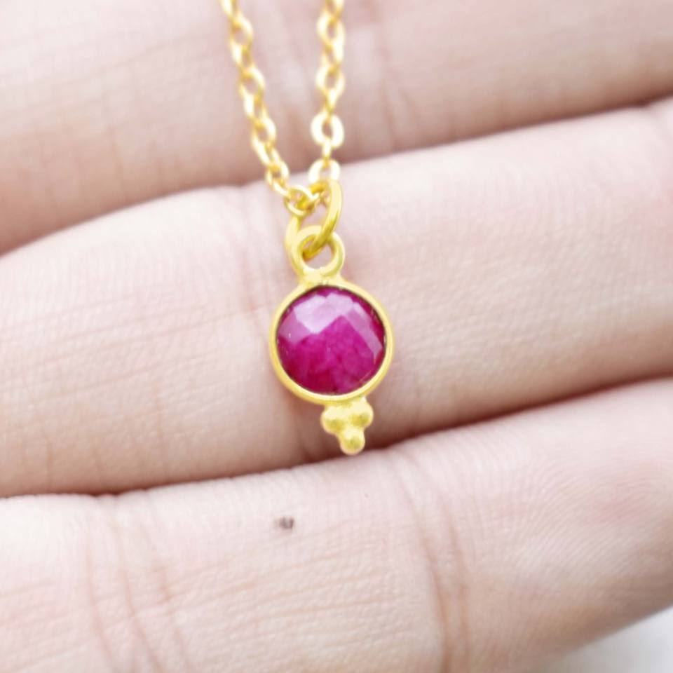 สร้อยคอพลอยทับทิมทรงกลมขนาด 6 มม. ประดับด้วยพลอยราวาสามเม็ด งานแฮนด์เมด เครื่องประดับที่โดดเด่น