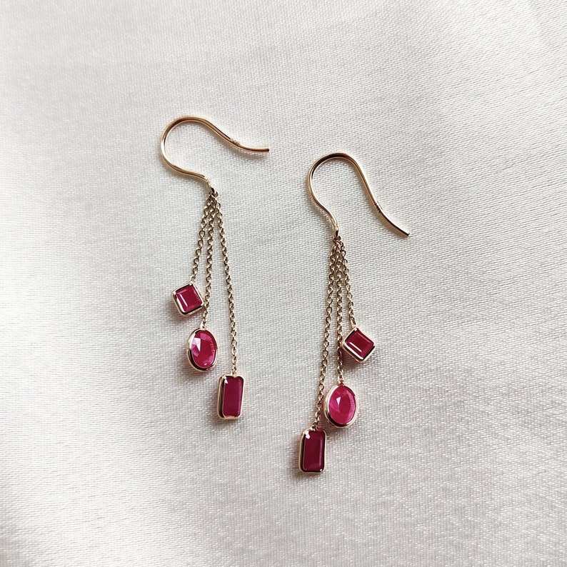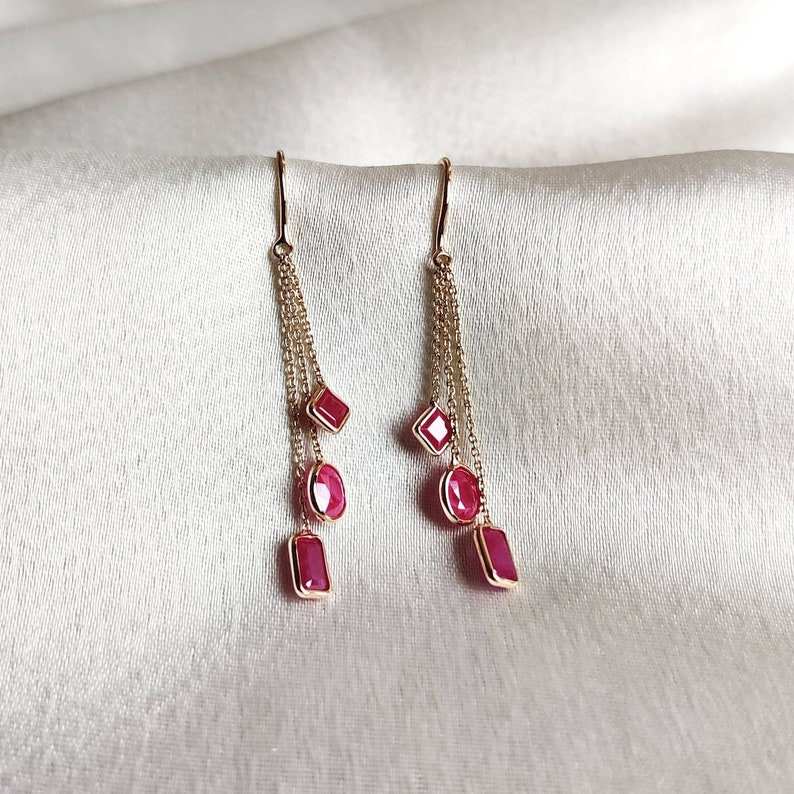ต่างหูหรูหราประดับทับทิม งานฝีมือสง่างามแบบราชวงศ์ นุ่มนวล