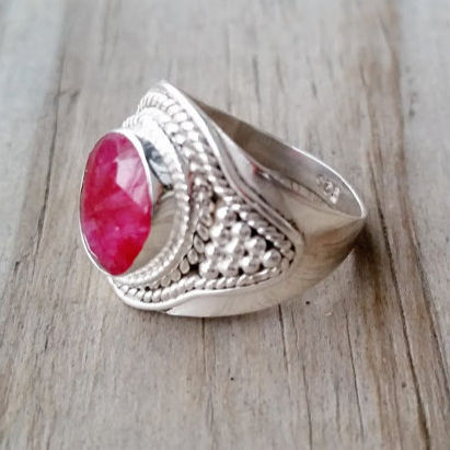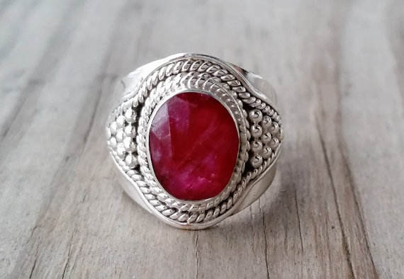 แหวนเงินแท้ประดับพลอยทับทิม สำหรับคนเกิดเดือนกรกฎาคม สไตล์คลาสสิก โบโฮ ยิปซี เหมาะสำหรับงานแต่งงานและงานปาร์ตี้