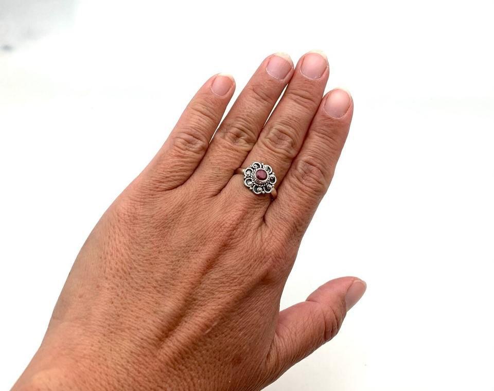 แหวนพลอยทับทิมเครื่องประดับสำหรับผู้หญิงเครื่องประดับเงินสไตล์ Boho 925เงินสเตอร์ลิงทำด้วยมือของขวัญสำหรับเธอ