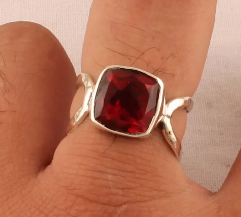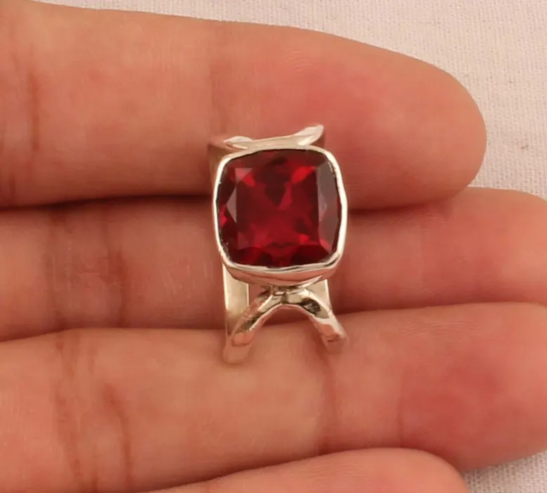 แหวนพลอยควอทซ์ทับทิมเบา925สเตอร์ลิงเงินแฮนด์เมดสุดเจ๋งดีไซน์สองชั้นหินสี่เหลี่ยมตัดเป็นของขวัญที่ทันสมัยสำหรับคุณแม่