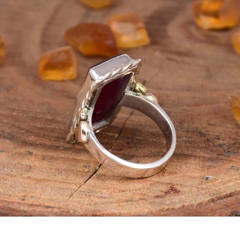 แหวนทับทิมแหวนบาร์สี่เหลี่ยมเงินสเตอร์ลิงเป็นของขวัญสำหรับเธอ