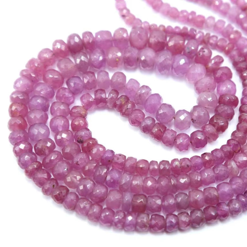 ลูกปัดรูปทรงกลมเหลี่ยมเพชรพลอยทับทิมแซฟไฟร์ลูกปัดอัญมณีแซฟไฟร์ทับทิมธรรมชาติ3X7MM ขนาดประมาณ2.เส้นลูกปัดสร้อยคอเต็ม