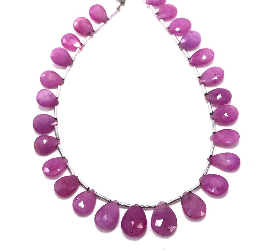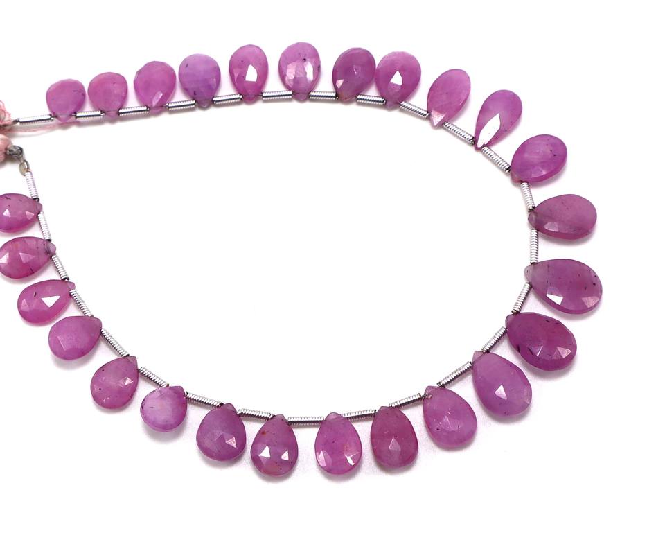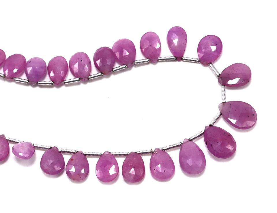 ลูกปัดรูปหยดน้ำ/ลูกแพร์ พลอยทับทิมและไพลินธรรมชาติ เจียระไนทรงเหลี่ยม คุณภาพ AAA+ ระดับท็อป ขนาด 8x6 มม.-12x8 มม. สำหรับทำเครื่องประดับ