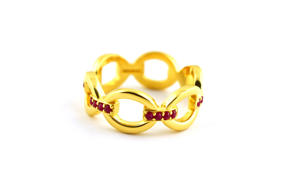 แหวนซ้อนกันได้ทับทิม: เงินสเตอร์ลิงทำด้วยมือพร้อมผิวสีทอง