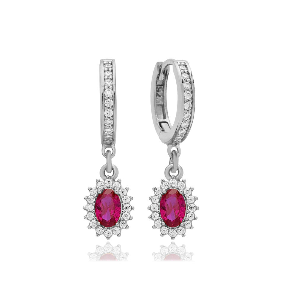 ทับทิมหิน Dainty เพชรสไตล์ห้อยต่างหูขายส่งตุรกี925เครื่องประดับเงินสเตอร์ลิง