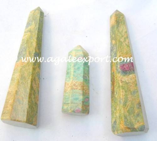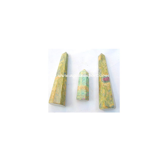 เสาโอเบลิสก์ทับทิม zoisite แกะสลักหินกึ่งมีค่าฮวงจุ้ยแกะสลักอัญมณีบำบัดที่สร้างขึ้นโดยซัพพลายเออร์