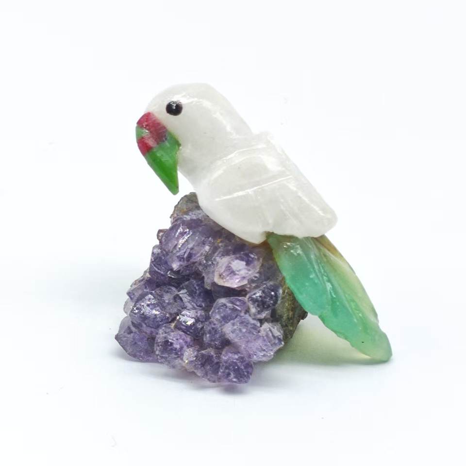 BJ2616แกะสลักนกแก้วทับทิม zoiset/ แคลไซต์สีขาว/สีคริสโซเพรส/อเมทิสต์