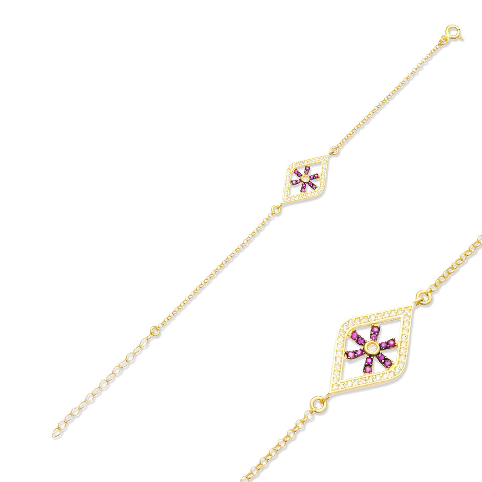 กำไลข้อมือดีไซน์ลายเกล็ดหิมะและทับทิมสีขาวแบบตุรกีงานฝีมือแบบ925เครื่องประดับเงินสเตอร์ลิง