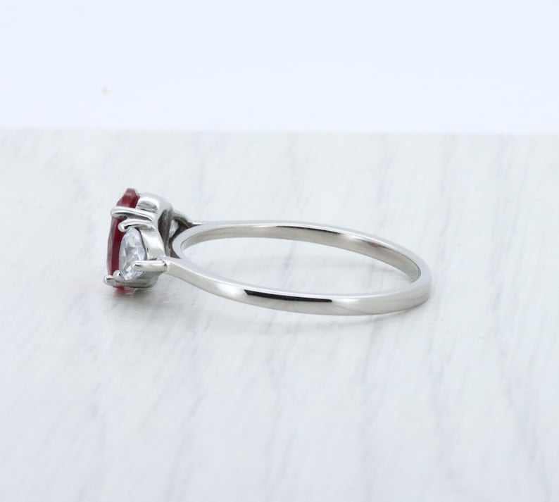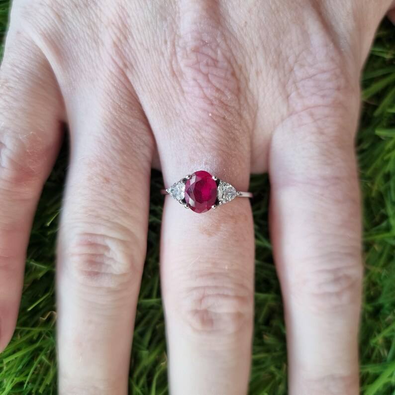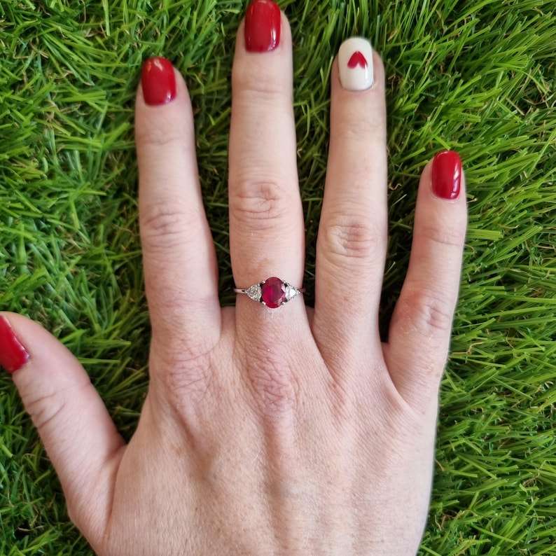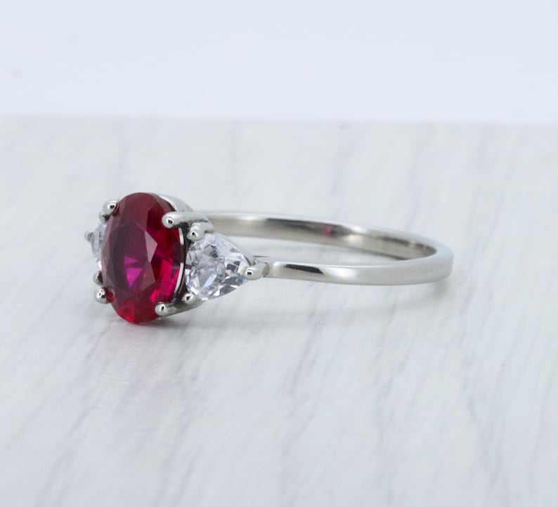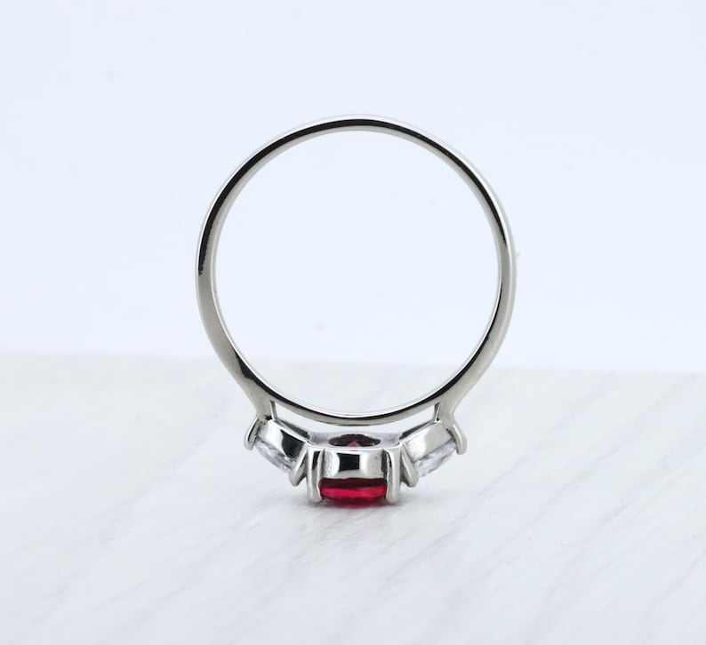 แหวนเงินแท้ 925 ประดับทับทิมและพลอยสังเคราะห์ทรงรีและทรงไตรลี่ออน 3 เม็ด ดีไซน์สามวง สำหรับผู้หญิง งานแฮนด์เมด ของขวัญวันครบรอบสุดพิเศษสำหรับคนรัก