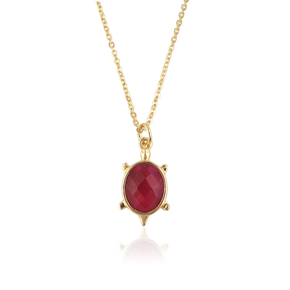 จี้รูปเต่าหยกทับทิมทรงรีประดับอัญมณี สร้อยคอทอง 18k ชุบทองเหลือง งานประณีต เหมาะสำหรับงานปาร์ตี้ เครื่องประดับแฟชั่น