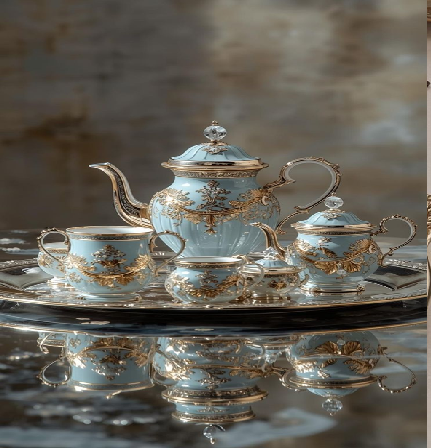 ชุดกาน้ำชาประดับอัญมณีสีแดงทับทิมพร้อมถาดรองเข้าชุด งานฝีมือตะวันออกกลางอันประณีต มีจำหน่ายในราคาขายส่ง