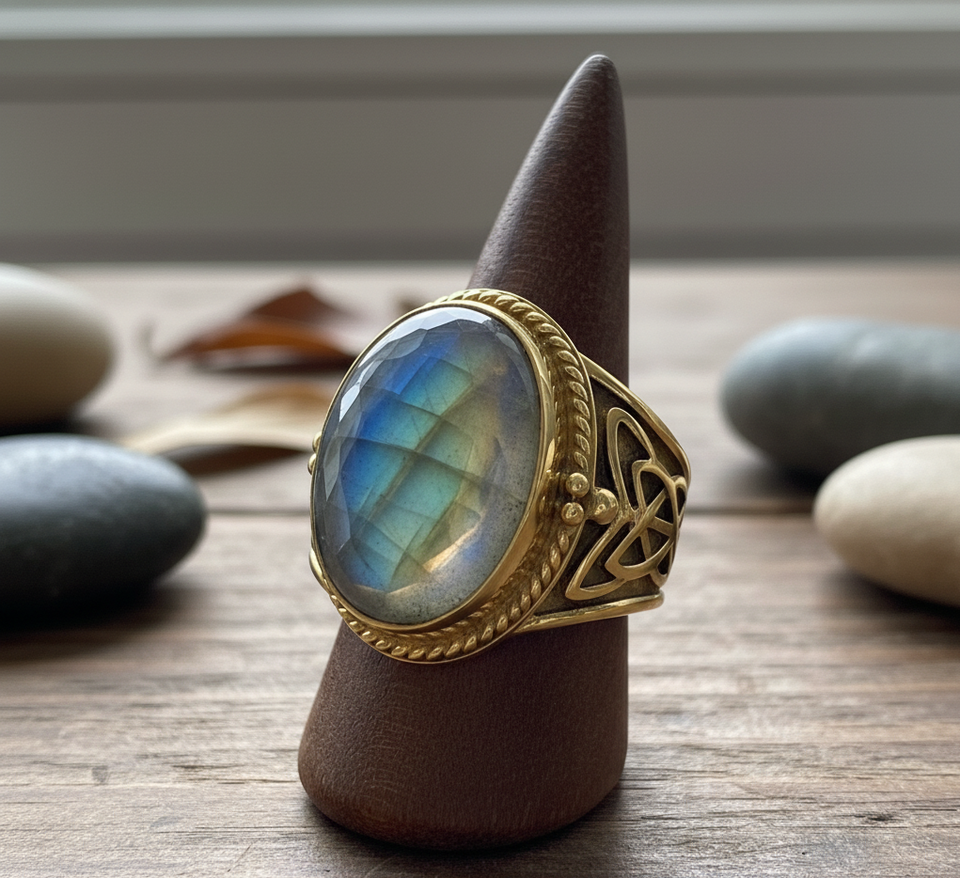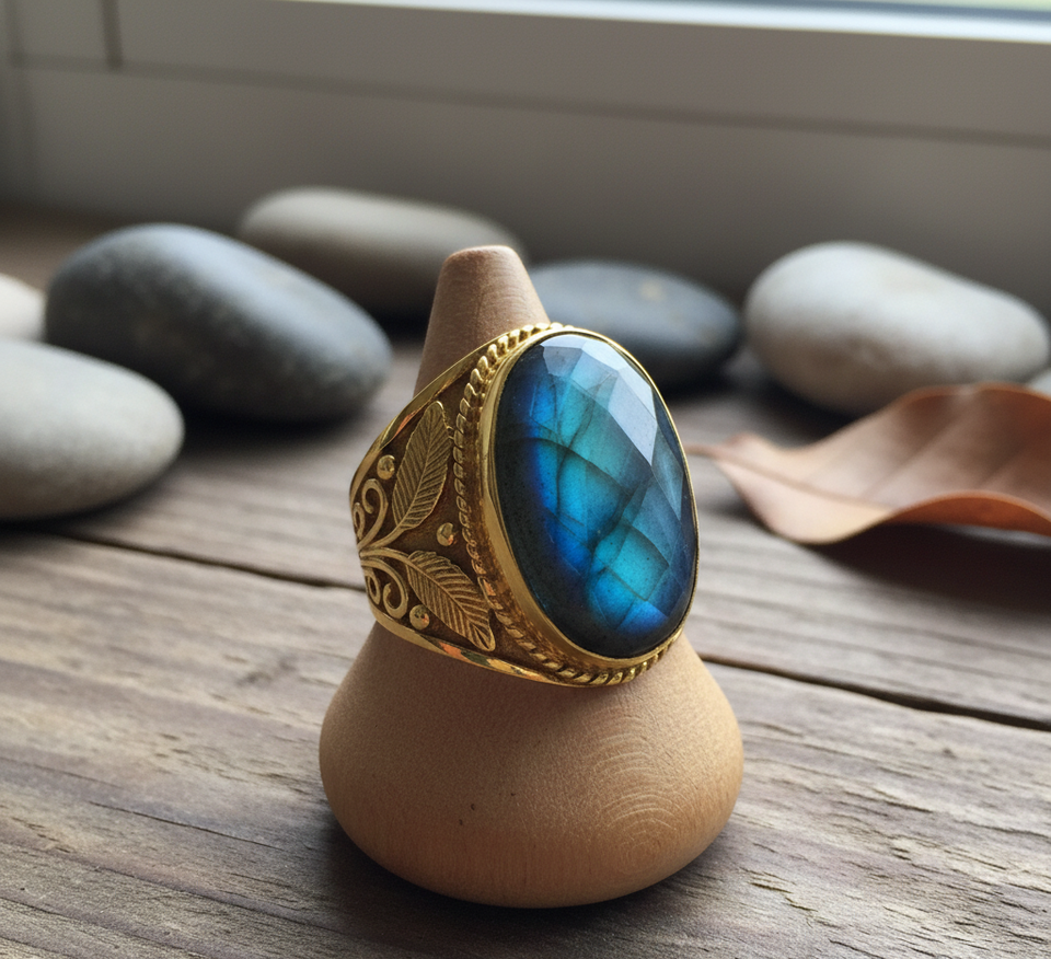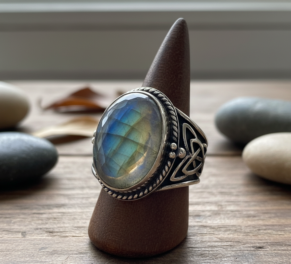 Rudra Gems Custom Party Band Fashion Ring High Quality 925 Silver Labradorite Gemstone Rhodium Plating Bezel Setting Third Party