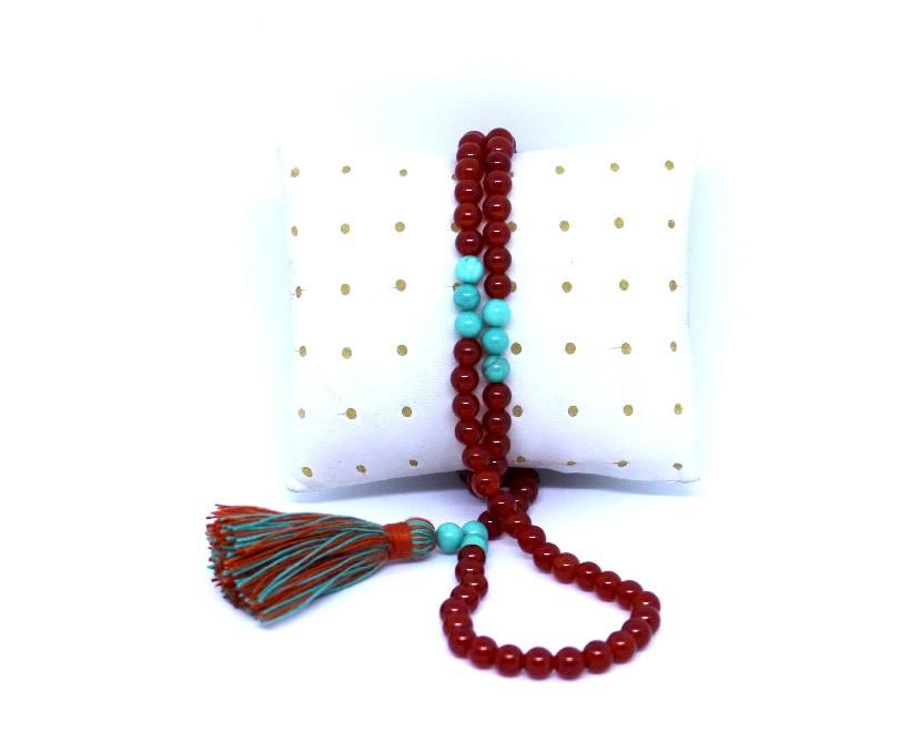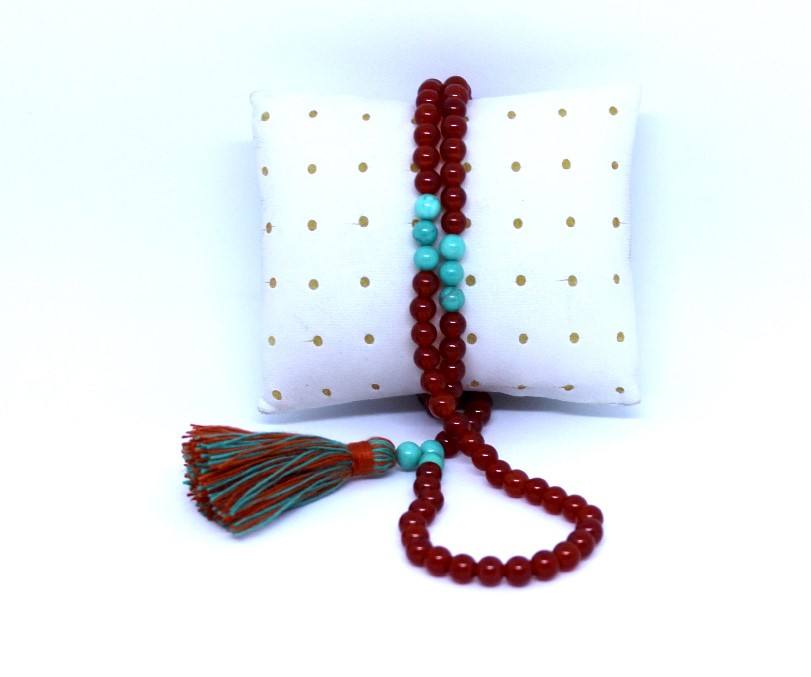 ลูกประคำอิสลามขนาดเล็กคุณภาพสูงจาก Rudra Gems ทำจากหินออนิกซ์สีแดงธรรมชาติ มิสบาฮะ ทัสบีฮ์ เตสบีฮ์ ของแท้จากผู้ผลิตบุคคลที่สาม