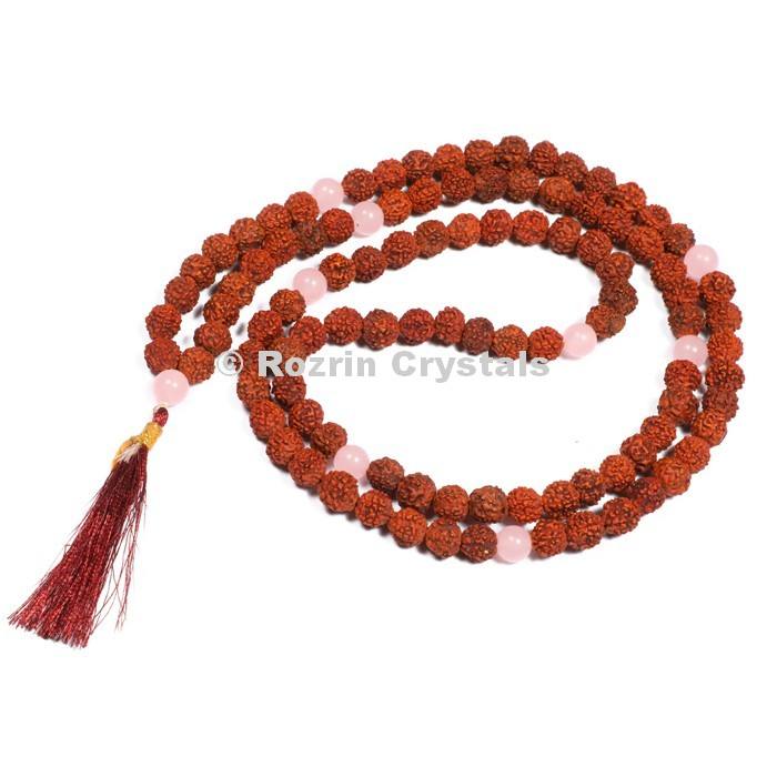 Rudraksha กับกุหลาบควอตซ์ Jap Mala