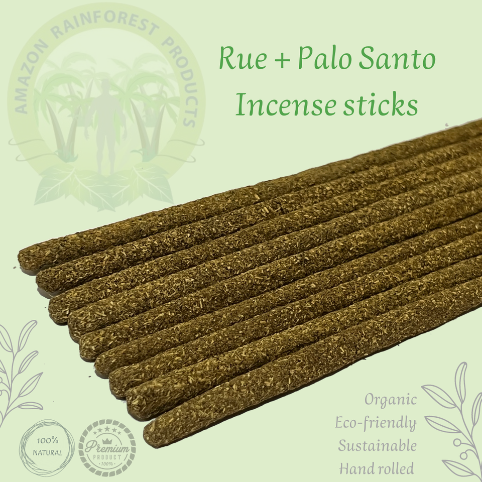 Rue & Palo Santo ธูปไม้คุณภาพพรีเมี่ยมทำด้วยมือโดยช่างฝีมือเป็นมิตรกับสิ่งแวดล้อมอย่างยั่งยืน7หน่วยต่อถุงน้ำมันหอมระเหย