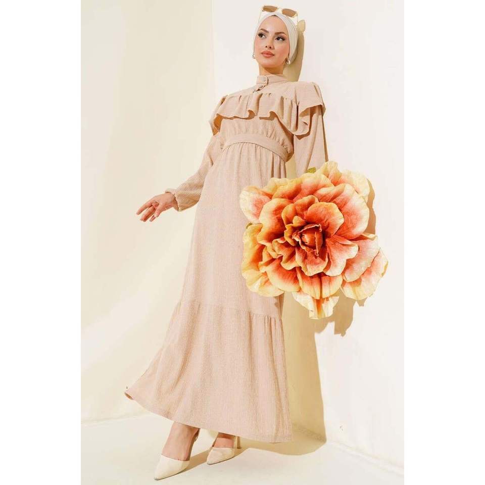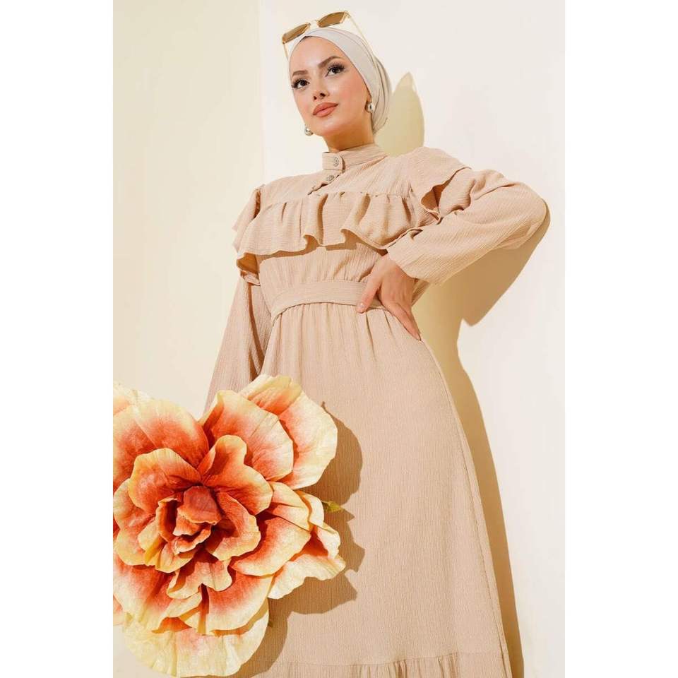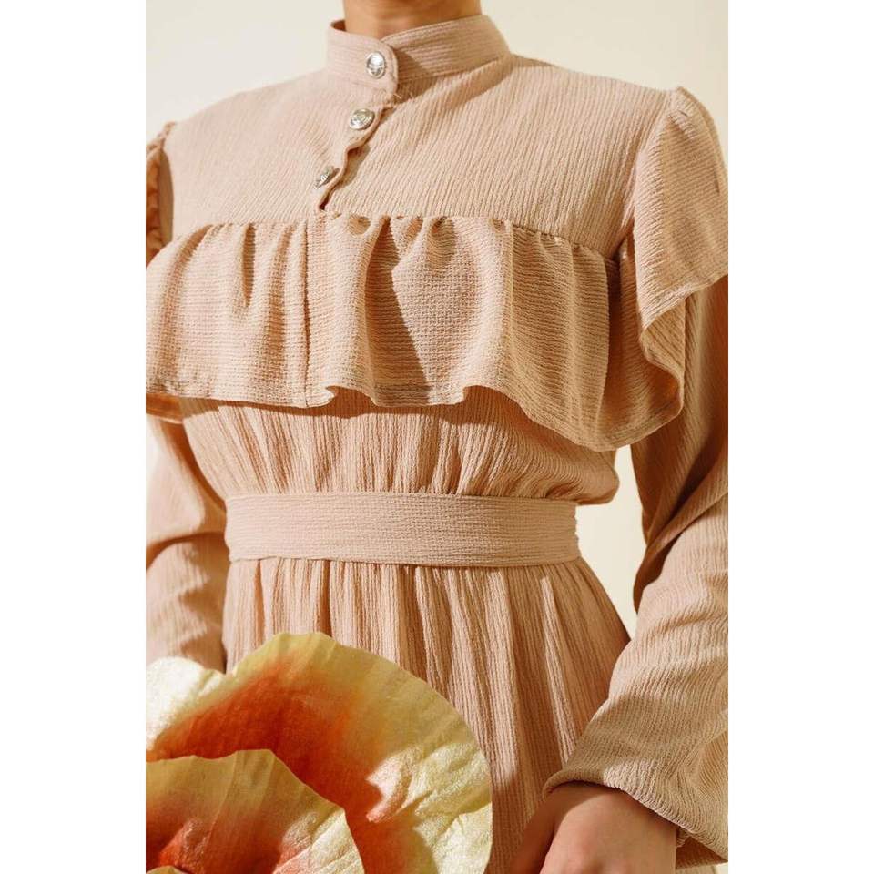 ชุดเดรสเครปหน้ามีระบายสีเบจ