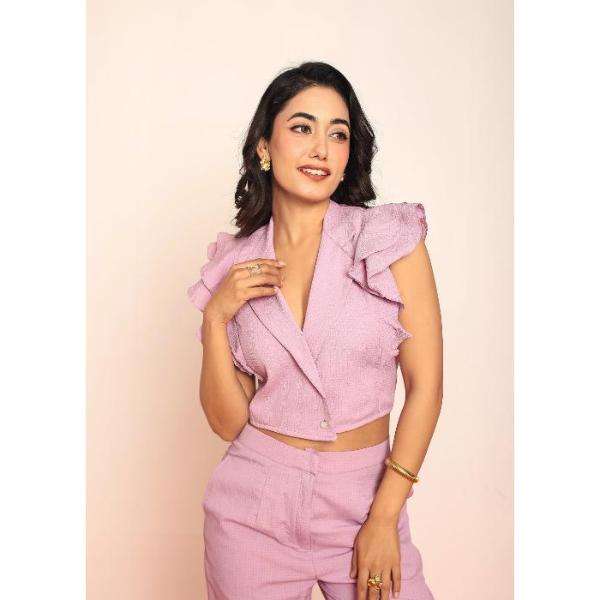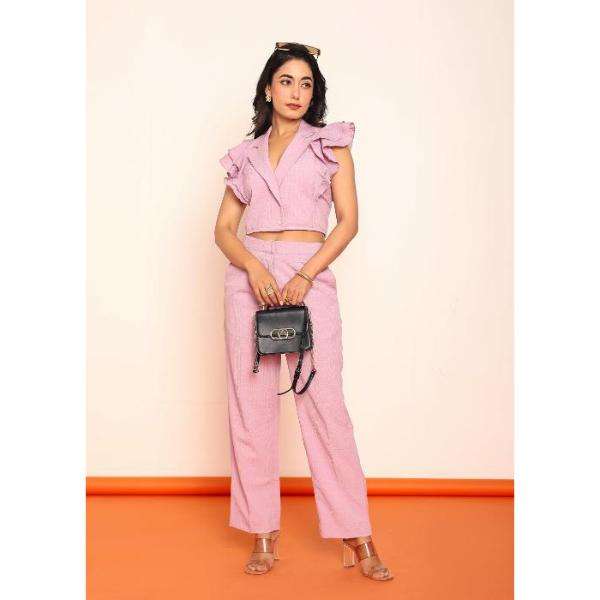 เสื้อเบลเซอร์ระบายพร้อมกระโปรงทรงตรง ชุดเซ็ตสำหรับผู้หญิง ดีไซน์หรูหราทันสมัย ชุดสองชิ้นสุดเก๋