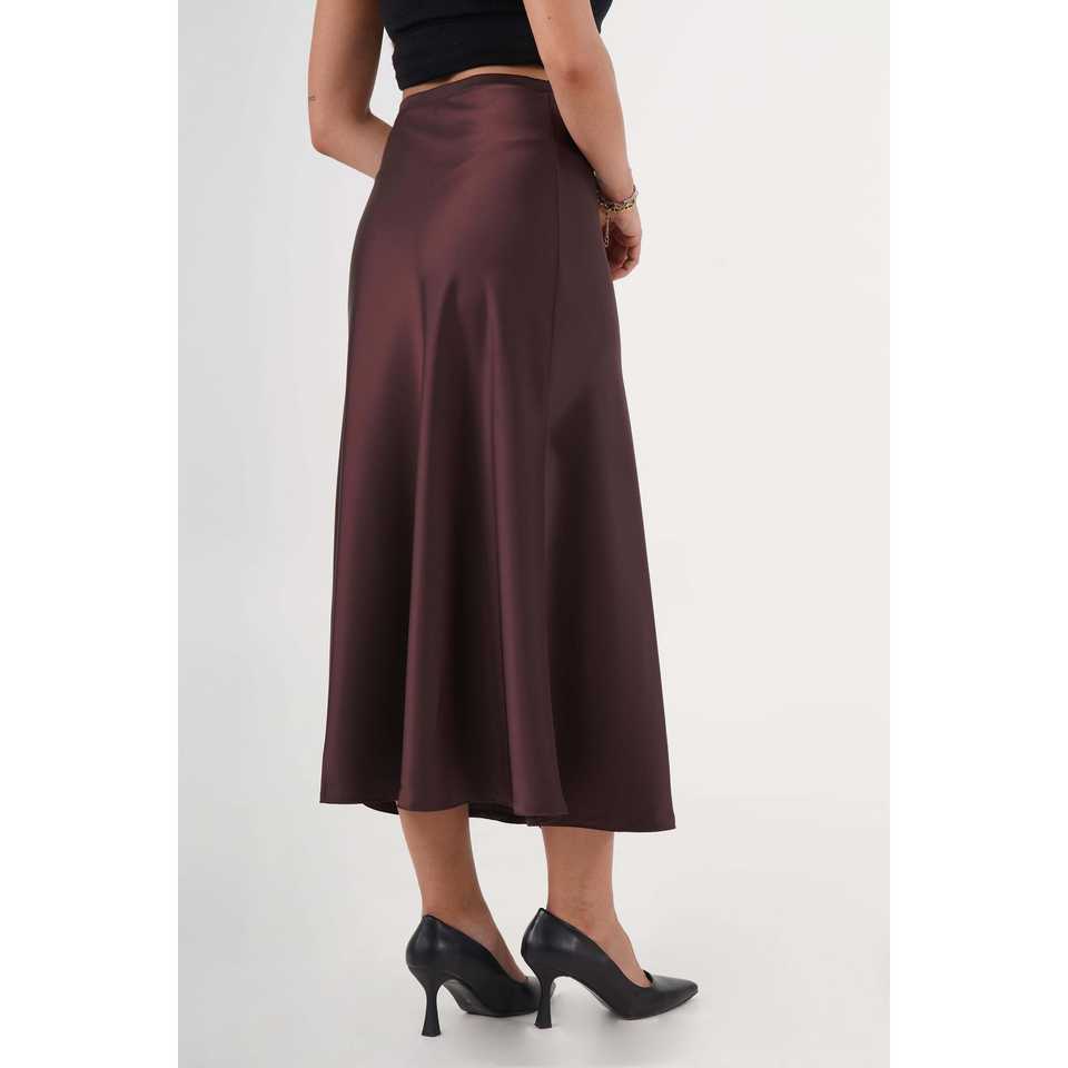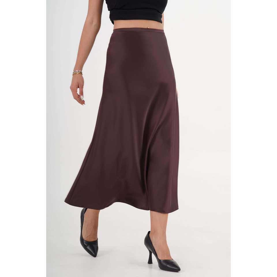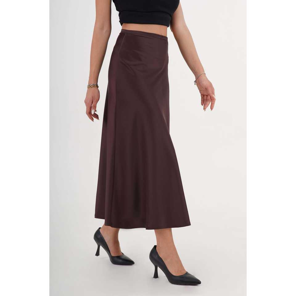 กระโปรงผ้าซาตินสีกาแฟทรงยาวแต่งระบาย ผู้หญิง ผ้าไหมแท้ 100% เงางาม เอวปกติ